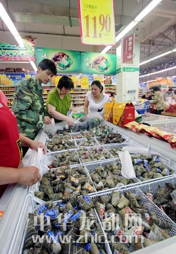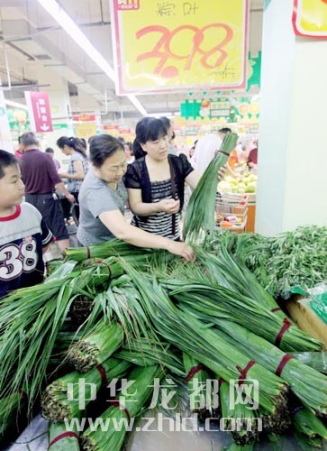 ??  距離端午節(jié)還有一周的時間,但各大超市和大街小巷已飄起了粽香。6月6日,在周口市區(qū)的各大超市、賣場,多個品牌的粽子已擺上專柜。高檔禮盒裝粽子的數(shù)量明顯減少,大眾價位的粽子成為主流。不少超市還在柜臺的顯眼處,專門擺放了粽葉等包粽子用的原料供市民挑選。晚報記者 金月全 攝