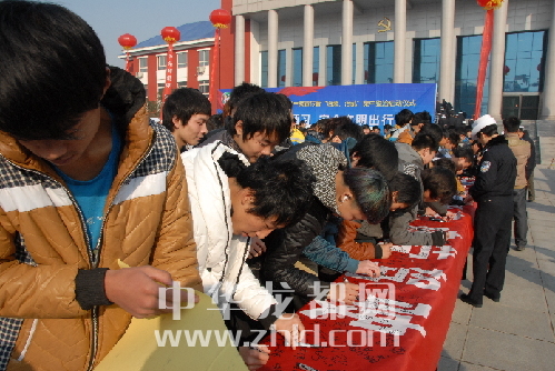 城市管理需全民參與。圖為市民在“文明交通”承諾橫幅上簽名。 晚報(bào)記者 彭慧 攝