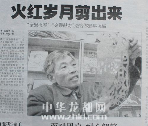 ????“這樣吧,好歹我已經(jīng)剪了5幅周口大發(fā)展作品,還有剛剪好的毛澤東和十大元帥像,你拍上照片發(fā)到報(bào)紙上吧,算我為晚報(bào)慶賀生日了?!毙芸藘€說(shuō)著拿起剪紙作品讓記者拍照。
