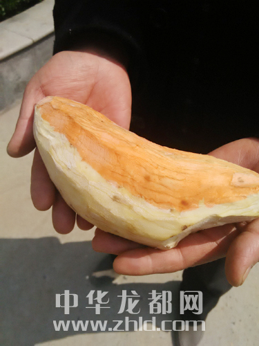 ? 近日,淮陽縣居民林樹松買到了一塊“混血”紅薯,紅薯一半是牙白色,一半是橘紅色。整塊紅薯長約23厘米,最粗處直徑約22厘米。因為擔心紅薯基因變異,林先生沒敢食用這塊紅薯。為此,記者采訪了周口師范學院生命科學與農(nóng)學學院院長陳龍。陳教授說,紅薯是塊莖類作物,不像小麥、大豆那樣,它不是種子,所以基本上不存在基因變異的情況。一塊紅薯出現(xiàn)兩種顏色,應(yīng)當是正?,F(xiàn)象,市民可以食用?! ⊥韴笥浾?朱海龍 攝