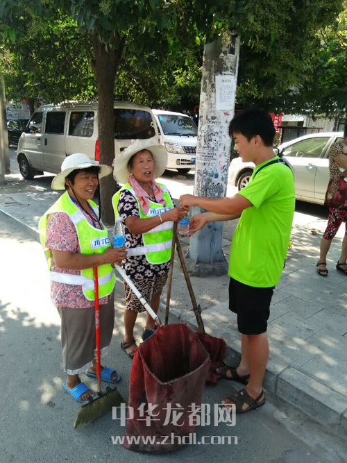 ????又是一年最熱時,在馬路上工作的交警和環(huán)衛(wèi)工可謂備受煎熬。有感于交警和環(huán)衛(wèi)工的辛苦,7月29日,愛心學(xué)校和公益機(jī)構(gòu)以送瓶裝礦泉水的方式,向他們表達(dá)了自己的敬意。晚報(bào)記者 郭坤 張燕 攝