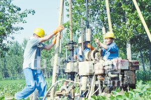 ????本報(bào)訊 (記者 張猛 文/圖) 8月3日下午,記者在西華縣田口鄉(xiāng)看到,一座座鉆機(jī)綿延數(shù)公里,工人們正頭頂烈日進(jìn)行開工建設(shè)前的鉆探勘測工作(如圖),標(biāo)志著鄭合高鐵周口西華段建設(shè)已進(jìn)入實(shí)質(zhì)性階段。