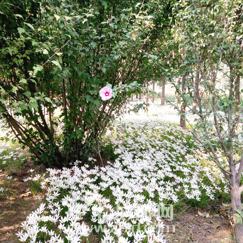 一朵朵白花入花溪,一朵紅花洞口嬉,九月入畫不遜春,滿街的微景秀大地。