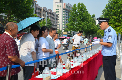 ????6月26日是國(guó)際禁毒日,當(dāng)天上午,周口市公安局禁毒辦聯(lián)合周口市法學(xué)會(huì)、共青團(tuán)周口市委、市衛(wèi)生局、市食品藥品監(jiān)督管理局等單位在市區(qū)五一文化廣場(chǎng)舉辦以“無毒青春、健康生活”為主題的國(guó)際禁毒日大型宣傳活動(dòng)。據(jù)了解,此次宣傳活動(dòng)共向群眾發(fā)放宣傳資料5000余份,接受各類咨詢300 余人次,受教育人數(shù)近7000 人。