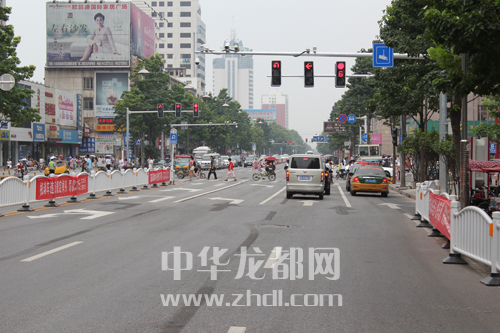 ????據(jù)了解,隨著七一路(六一路至中州大道段)的升級(jí)改造完成,該路段路面拓寬,通行非常暢通,還增加了很多人性化、都市化的設(shè)施:雙向4車(chē)道變成雙向9車(chē)道,路口的紅綠燈變成雙信號(hào)燈(圖一),取消了安全島,重新施劃了非機(jī)動(dòng)車(chē)道和行人斑馬線(圖二),增加了左轉(zhuǎn)帶調(diào)頭標(biāo)線等。