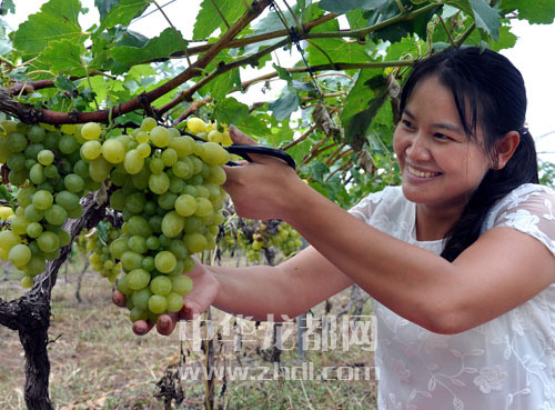 ????金秋送爽,一名游客在玉桂千畝生態(tài)葡萄園采摘葡萄。近年來,我市積極推進(jìn)農(nóng)業(yè)示范園建設(shè),打造了玉桂千畝生態(tài)葡萄園等一批特色農(nóng)業(yè)基地,創(chuàng)新農(nóng)業(yè)旅游融合發(fā)展思路,引導(dǎo)特色農(nóng)業(yè)基地開發(fā)建設(shè),取得了良好效果。據(jù)了解,玉桂千畝葡萄園堅(jiān)持走規(guī)模化、生態(tài)化、精品化、綠色化的路子,15種國內(nèi)優(yōu)質(zhì)葡萄品種可持續(xù)采摘至9月中下旬。
