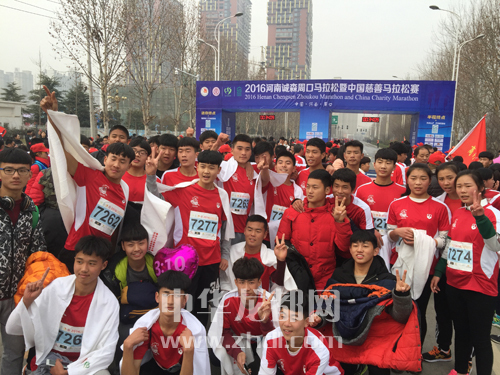 ????本報(bào)訊 千年周口情,萬眾馬拉松。12月18日上午,由中國田徑協(xié)會(huì)、中華慈善總會(huì)、河南省慈善總會(huì)、周口市人民政府主辦,周口市體育局、周口廣播電視臺(tái)、周口市慈善總會(huì)、河南路跑文化傳媒有限公司承辦的2016河南誠森周口馬拉松暨中國慈善馬拉松賽在我市中心城區(qū)激情開賽,來自世界各地的5300余名選手報(bào)名參加了比賽。