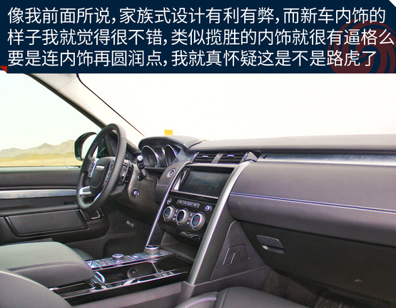 內(nèi)飾趨向家族化設(shè)計(jì),與攬勝的內(nèi)飾差不多。特別是在內(nèi)飾的做工和用料依舊保持了奢華的質(zhì)感,只是多了些簡約的味道。高級的材料隨處可見,讓我經(jīng)?;秀蔽沂遣皇情_錯了車,這樣的后果很明顯,讓我對它感覺會越來越溫柔,要是開著它去與風(fēng)沙、泥土、亂石或大漠相約,我怎么能舍得?