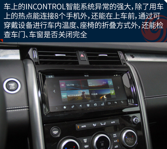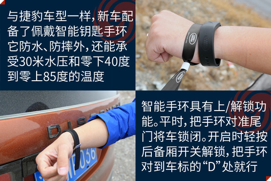 在配置上,新車也做到了盡善盡美,像方向盤加熱、四區(qū)自動空調(diào)、全景影像、英國之寶音響系統(tǒng)、后排娛樂系統(tǒng)、雙天窗它都有。智能系統(tǒng)方面,InControl系統(tǒng)除了常見的娛樂、媒體、熱點(diǎn)功能,還可以顯示并調(diào)節(jié)大量的車輛輔助信息,并支持遠(yuǎn)程控制。此外還可選裝智能手環(huán),實(shí)現(xiàn)更方便的隨身鑰匙。