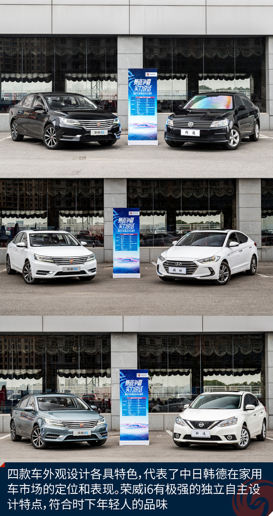 鳳凰汽車(chē)·搶先試駕?榮威i6可以說(shuō)打響了互聯(lián)網(wǎng)家轎的第一槍,它是繼RX5之后,榮威旗下的第二款重量級(jí)產(chǎn)品,延續(xù)了榮威RX5家族律動(dòng)美學(xué)的優(yōu)良基因。上市十天訂單便突破萬(wàn)輛大關(guān),是一款非常有潛力挑戰(zhàn)合資競(jìng)品的車(chē)型。但是光說(shuō)不練,假把勢(shì)。今天我們就在江蘇萬(wàn)馳的賽道場(chǎng)地內(nèi),特意選取了同級(jí)合資老炮軒逸16款1.6LXV CVT智享版、朗逸17款1.6L自動(dòng)舒適版、領(lǐng)動(dòng)?16款 1.4T 雙離合炫動(dòng)?精英型,和榮威i6 20T互聯(lián)網(wǎng)智尊版做個(gè)對(duì)比,看看這些銷(xiāo)量過(guò)萬(wàn)的合資家轎與新晉的小鮮肉榮威i6到底誰(shuí)更勝一籌?