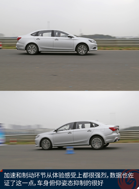 在動(dòng)力方面,榮威i6搭載了上汽“藍(lán)芯”SGE 20T發(fā)動(dòng)機(jī),采用缸內(nèi)中置直噴渦輪增壓、高效氣門(mén)配氣機(jī)構(gòu)等國(guó)際領(lǐng)先技術(shù),配合TST 7速雙離合變速器,榮威i6最大功率169馬力,比朗逸、軒逸和領(lǐng)動(dòng)分別高出了59馬力、43馬力、39馬力。而實(shí)際測(cè)試中也證實(shí)了這一點(diǎn),榮威i6在加速和剎車(chē)方面確實(shí)領(lǐng)先于競(jìng)品車(chē)型。7.88秒的0-100km/h的加速成績(jī)確實(shí)讓人大吃一驚,榮威i6表現(xiàn)出了極高的運(yùn)動(dòng)化調(diào)教。剎車(chē)方面,榮威i6也表現(xiàn)相當(dāng)出色,36.59米的剎車(chē)距離,可以跟一些性能車(chē)相提并論。300mm的通風(fēng)剎車(chē)片功不可沒(méi),整個(gè)制動(dòng)過(guò)程有力平穩(wěn),車(chē)身懸掛對(duì)于點(diǎn)頭的抑制也很到位。