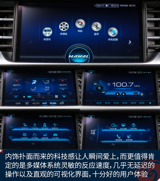 如果說外觀給了你第一重驚喜,那么內(nèi)飾的設(shè)計一定超乎了你對自主品牌的認(rèn)知,至少我認(rèn)為,全新哈弗H6上的這套內(nèi)飾,在設(shè)計上已經(jīng)超越了很多合資品牌。撲面而來的科技感讓人瞬間愛上,而更值得肯定的是這套多媒體系統(tǒng)靈敏的反應(yīng)速度,幾乎無延遲的操作以及直觀的可視化界面,都帶來十分好的用戶體驗。