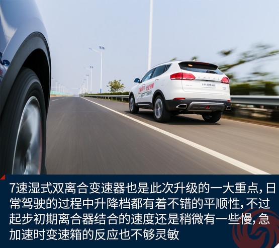 7速濕式雙離合變速器也是此次升級的一大重點,日常駕駛的過程中升降檔都有著不錯的平順性,不過起步初期離合器結(jié)合的速度還是稍微有一些慢,急加速時變速箱的反應(yīng)也不夠靈敏,這在一定程度上拖累了整體的動力表現(xiàn)。