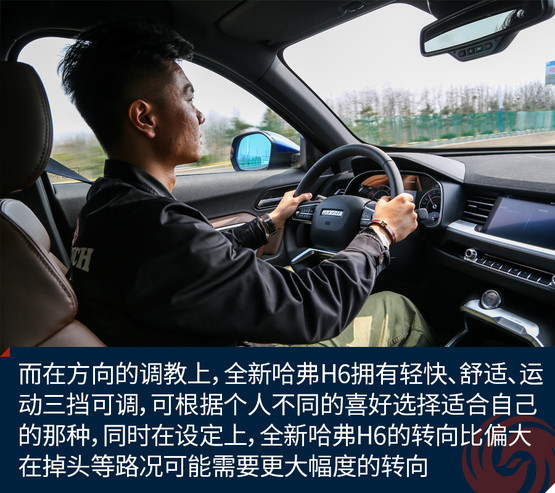 而在方向的調(diào)教上,全新哈弗H6擁有輕快、舒適、運動三擋可調(diào),可根據(jù)個人不同的喜好選擇適合自己的那種,同時在設(shè)定上,全新哈弗H6的轉(zhuǎn)向比偏大,在掉頭或者駛?cè)胍恍┍容^刁鉆的小路時可能需要更大幅度的轉(zhuǎn)向。
