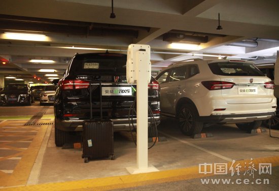 在上海虹橋機場的停車樓,由兩排充電樁構成的專屬停車區(qū)甚是醒目,專屬停車位上的榮威eRX5車頭標志閃爍的呼吸燈表示車輛正處于充電狀態(tài)。