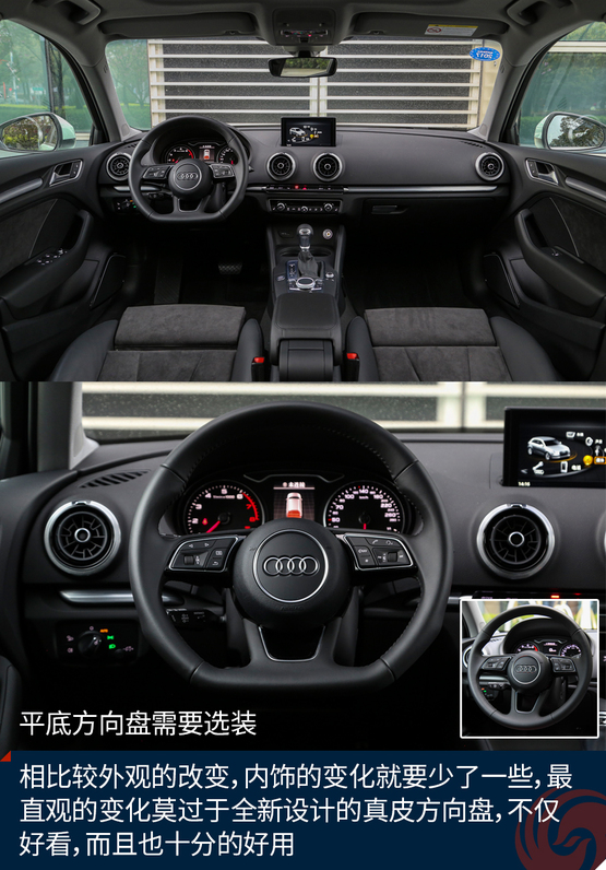 當然由于我們試駕的這臺車擁有S-Line套件,所以相比普通車款會更顯運動一些,不過就算是普通的版本,相比現(xiàn)款車型也變得更加運動了,也許設(shè)計師也明白,這款中期改款的A3并不是要做到顛覆的設(shè)計,而是通過細節(jié)的變化讓新車型變得更加犀利、動感。