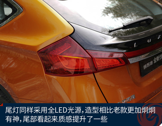 車身的側(cè)面依然是溜背的造型,這也是這臺車最大的特點。車尾的造型也基本沒有太大的變化,但是細(xì)看卻有著質(zhì)一般的飛躍,車燈為全紅色,車標(biāo)變成了“納智捷”的英文字母,牌照架周邊的質(zhì)感明顯比老款好看了許多,不過個人對這個左右貫穿的紅色裝飾保留意見,認(rèn)為沒有它或許更好。