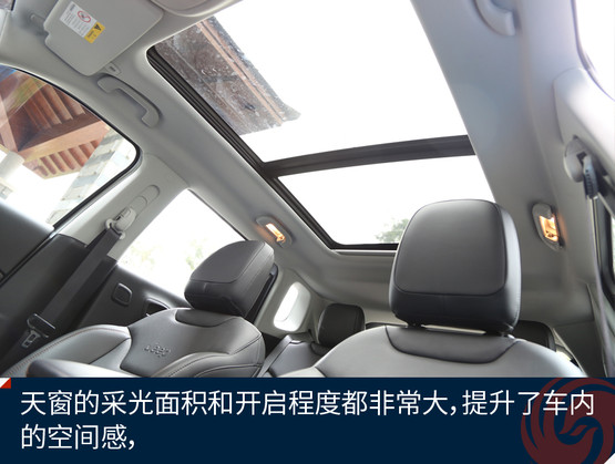 新指南者橫向空間和腿部空間表現(xiàn)都不錯,在頭部空間上略有欠缺,后排在坐直的情況下,頭部空間比較壓抑,幸好全景天窗可以彌補這一點,指南者的全景天窗擴展了車內(nèi)的采光面積及視覺廣度。