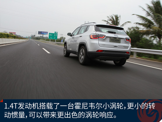 1.4T的版本很遺憾沒有配備四驅(qū)系統(tǒng),注重公路性能是它的全部,在城市路面上駕駛,指南者表現(xiàn)的很輕松輕盈,電子助力方向盤手感很輕。全新Jeep指南者還動態(tài)底盤——四輪獨立懸掛+主動自適應減震系統(tǒng)。這套減震系統(tǒng)能夠在微秒間自動感應路面回饋,實時改變阻尼大小,從“最軟”到“最硬”只需0.2秒??梢愿惺艿降氖沁@套減震器對于路面的坑洼抑制的非常好,濾震出色,車廂內(nèi)感受到的晃動很少。在彎道上的側(cè)向支撐相對就弱一點,這也是魚和熊掌的原因。