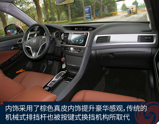 車內(nèi)采用了新的棕色真皮內(nèi)飾,而且還覺得缺了點(diǎn)什么。沒錯(cuò)!之前的排擋桿不見了,取而代之的是按鍵式換擋機(jī)構(gòu),看上去更有科技感,控制區(qū)也更簡(jiǎn)潔了。