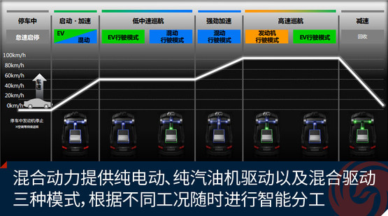只有當(dāng)車速高于65公里/時(shí)且油門開度合適時(shí),這套動(dòng)力系統(tǒng)才會(huì)有可能讓發(fā)動(dòng)機(jī)單獨(dú)驅(qū)動(dòng)車輪,但此時(shí)其還有一部分工作是為電動(dòng)機(jī)充電。而在此時(shí),如果車輛向前的驅(qū)動(dòng)力是依靠發(fā)動(dòng)機(jī)來輸出的話,那么其電動(dòng)機(jī)將不會(huì)為車輛提供動(dòng)力。換句話說,也就是意味著思鉑睿混動(dòng)的這套i-MMD系統(tǒng)雖然在車上搭載著兩個(gè)動(dòng)力源,但是平時(shí)在城區(qū)行駛,它在驅(qū)動(dòng)車輛前行時(shí)更多情況下會(huì)使用到的有且只有一個(gè)。