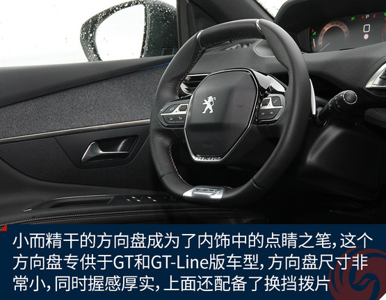 小而精干的方向盤成為了內(nèi)飾中的點睛之筆,這個方向盤專供于GT和GT-Line版車型,方向盤尺寸非常小,同時握感厚實,上面還配備了換擋撥片,單看方向盤根本想不到這出于是一款7座中型SUV。