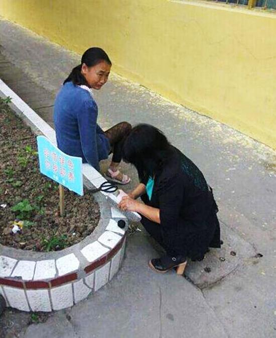 ????近兩天,微信朋友圈流傳一組照片:一位身著黑衣的女子蹲在花壇邊,低頭縫補(bǔ)一只粉色涼鞋(如圖)。旁邊坐著一個(gè)小女孩,背過(guò)身去拭淚。圖片配文:補(bǔ)鞋的老師像媽媽。這感人一幕發(fā)生在5月21日項(xiàng)城市昌福學(xué)校,該校學(xué)生大部分是留守兒童,補(bǔ)鞋的女子是該校的郭雪梅老師。這件事經(jīng)河南日?qǐng)?bào)客戶端和河南日?qǐng)?bào)官方微博發(fā)布后,在網(wǎng)上引起強(qiáng)烈反響,很多網(wǎng)友表示,這組圖片戳中了心中最柔軟的那一塊。