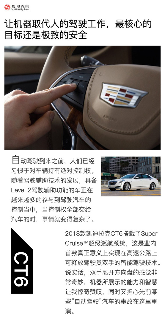 ????????“自動駕駛”的概念這幾年被新興技術(shù)企業(yè)和互聯(lián)網(wǎng)企業(yè)炒的很熱鬧,但伴隨著幾次鮮血淋漓的惡性交通事故,人們對待“自動駕駛”產(chǎn)生了質(zhì)疑。盡管我們毫不懷疑自動駕駛將會成為汽車工業(yè)的未來,但正像剛才所說,如何確保未來的結(jié)果朝著良好的方向推進?在體驗過凱迪拉克Super Cruise?超級巡航系統(tǒng)后,我可以說他們找到了一套行之有效,以確保車輛行駛安全第一優(yōu)先的解決方案。