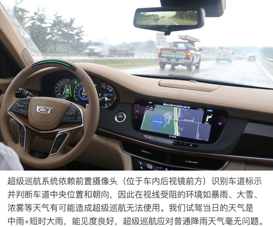 ????????超級巡航系統(tǒng)通過GPS定位的高精度地圖和車載攝像機定位和識別行駛路徑并判斷車輛所在的車道,所以遇到暴雨、大霧或沙塵等影響攝像頭工作的天氣,或者駛?cè)胨淼雷钄郍PS信號的時候,超級巡航系統(tǒng)的使用可能受到影響。雖然這些突發(fā)狀況可能會導致超級巡航功能在行駛中突然推出,但不必擔心安全問題,系統(tǒng)會及時提示駕駛者接管汽車,其邏輯與駕駛者“失能”的提醒流程幾乎相同,駕駛員有從容的時間反應并接管汽車。