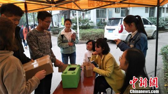 ????中新網(wǎng)武漢11月22日電 (肖守嬌 葛揚(yáng)陽 楊潔)“雙十一”后的快遞包裝紙、包裝盒如何處置?武漢華夏理工學(xué)院學(xué)生想出一個(gè)妙招:把快遞盒回收改造成禮品盒、收納盒、貓窩、垃圾盒等創(chuàng)意物品,再免費(fèi)提供給學(xué)生使用。