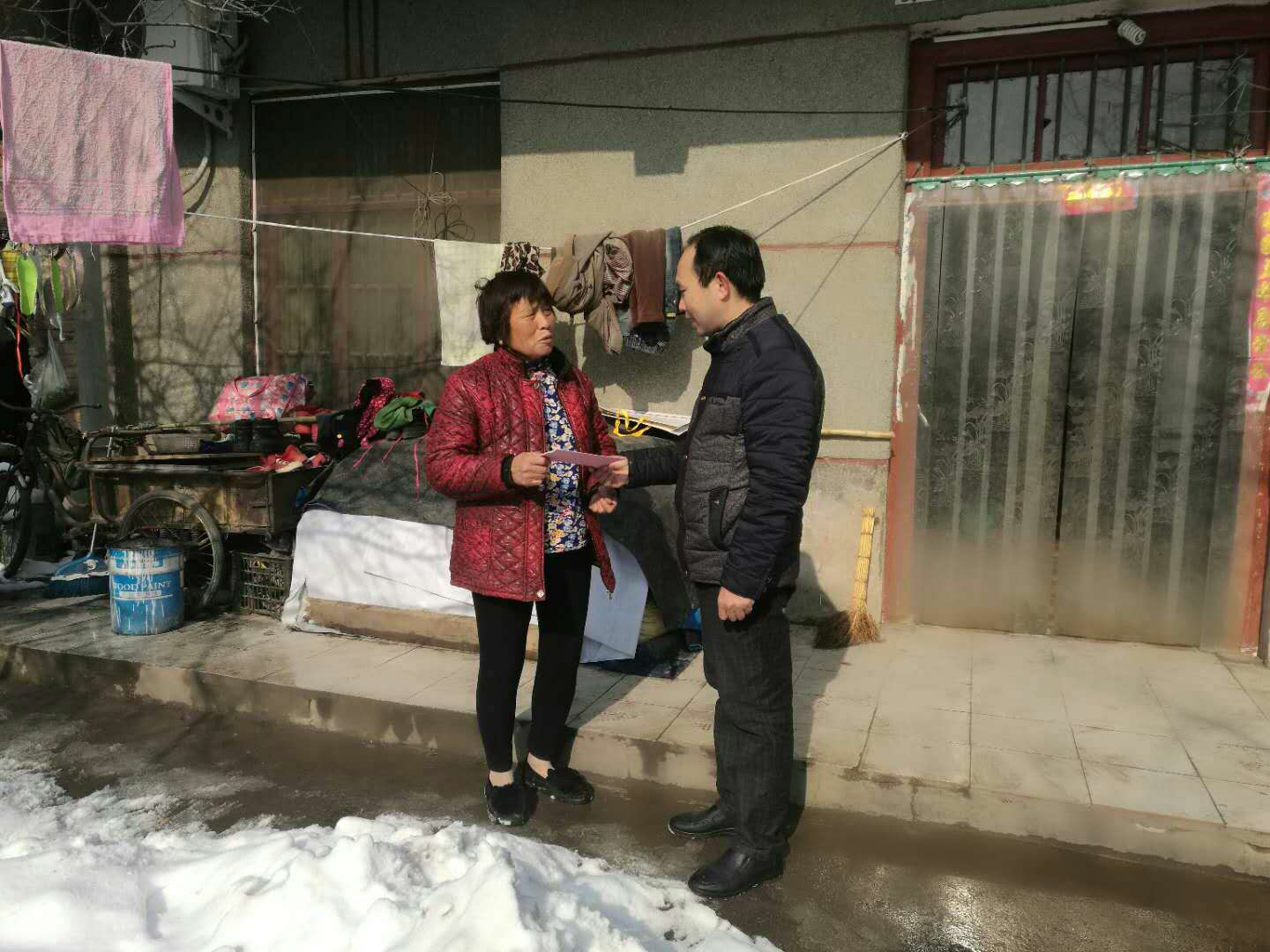 商水縣是全國扶貧開發(fā)重點縣,貧困人口多,連續(xù)一周的大雪惡劣天氣使困難群眾在生產(chǎn)、生活等方面面臨許多困難和問題。對此,商水縣委書記馬衛(wèi)東及時召開四個班子會議,要求縣鄉(xiāng)領導干部和脫貧攻堅駐村工作隊員把脫貧攻堅送溫暖活動當作政治任務,抓在手上,放在心上,深入到貧困戶家中走訪慰問,與貧困戶交朋友、幫助解決實際困難;要求縣直各幫扶單位一把手帶隊,到派駐村查看貧困戶生產(chǎn)生活現(xiàn)狀,有針對性地開展慰問活動,在群眾“最急”上見真情、 “最盼”上做文章、“最難”上送溫暖,切實提升群眾的幸福感和滿意度。