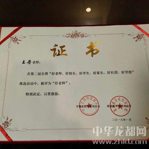 1月5日至6日,由中國基礎教育論壇雜志社和中國互聯(lián)網(wǎng)新聞中心主辦的“好教師先進事跡報告會暨第二屆六好展示活動”在北京中關村隆重舉行。王丹作為一名“好老師”在會上作了發(fā)言。她發(fā)言的題目是《家訪,讓我們走進孩子的內心》。記者了解到,王丹在平時的教育工作中一直把家訪當作工作中的重要任務,正是由于重視家訪,有不少“問題”兒童在她的教育下得到身心健康成長,成為社會的有用之才。當日的會上,國家總督學顧問、原教育部副部長張?zhí)毂#瑖腋笨偠綄W、原教育部基礎教育司司長王文湛,北京市朝陽區(qū)教委副主任、北京中學校長夏青峰,國家義務教育教學課程研制組核心成員、北京市中關村第三小學校長劉可欽,中國人生科學學會副會長兼中小學教育專業(yè)委員會會長聶延軍和科學會秘書長孟凡浩都做了重要講話。