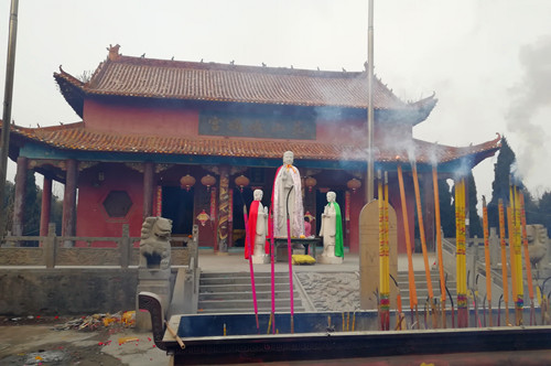 在西華這片古老又神秘的土地探尋盤古女媧創(chuàng)世文化,自然少不了拜謁昆山女媧宮。這座宮殿位于西華縣昆山辦事處山子頭村,因為傳說這里是女媧的居住地,所以在西華人心目中有著不可替代的地位。2018年元旦前夕,我們驅車前往,進入山子頭村一路西行直達盡頭,女媧宮就赫然于眼前了。待記者在宮門前站定,不經(jīng)意回望來路,竟發(fā)現(xiàn)眼前是一條坡度明顯的下坡路。見記者詫異,一旁的村民笑著說:“山子頭嘛,就是說這里是山嶺的頭兒,女媧宮就在最頂上?!?/p>
