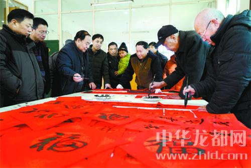 春節(jié)臨近,書法愛(ài)好者走進(jìn)鄉(xiāng)村,開展“迎新春 送春聯(lián)”活動(dòng),給父老鄉(xiāng)親送上新春祝福。王曉 攝