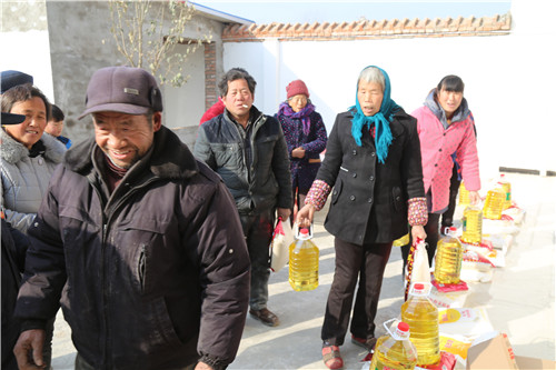 當(dāng)日上午,雖然天氣寒冷,可葉莊行政村村室院里卻暖意融融。該村村主任熊茂禮正在把備好的年貨發(fā)放到49戶村民的手中。“非常感謝茂禮這么遠回老家看望我們這些困難戶,讓我們過上一個好年?!爆F(xiàn)年76歲的村民張多朗是個五保戶,接過熊茂禮送上的年貨連聲道謝。熊茂禮鼓勵困難戶一定要對生活充滿信心,樂觀地面對生活。同時,希望困難戶要保持良好心態(tài),積極面對困難,自強自立,早日擺脫困境。