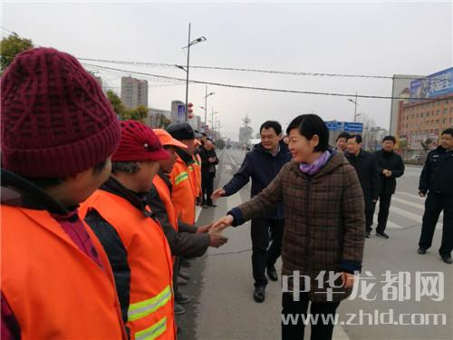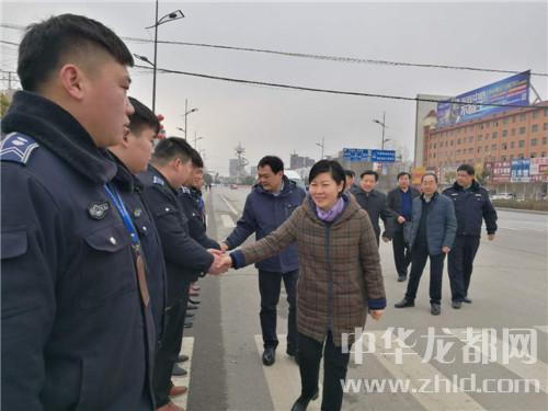 在鄲城縣城新華路與迎賓大道路口,羅文閣、李全林和一線值勤的環(huán)衛(wèi)工人、城管隊(duì)員一一握手,深切關(guān)心環(huán)衛(wèi)工人和城管隊(duì)員的冷暖?!翱词侄鄾?,要穿厚點(diǎn)兒呀。大年三十了,你們放棄和家人團(tuán)圓吃餃子的機(jī)會(huì),在為我們的縣城保潔,我們城市的清潔有賴于你們。你們辛苦了,給你們拜個(gè)年,祝你們身體健康?!绷_文閣向環(huán)衛(wèi)工人遞上慰問(wèn)金時(shí),樸實(shí)的話語(yǔ)、殷殷的關(guān)懷把黨的溫暖涌向環(huán)衛(wèi)工人的心窩兒?!安恍量?,領(lǐng)導(dǎo)來(lái)看俺,俺里比吃餃子暖和。”環(huán)衛(wèi)工人邊鼓掌邊道出了內(nèi)心的激動(dòng)。