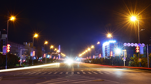 亮起來的不僅是老城區(qū),建設(shè)一新的新城區(qū)各單位樓體,小區(qū)樓體也都亮了起來,各種燈飾隨著樓體造型蜿蜒曲折,熠熠生輝。新華路路旁邊的行道樹都換上了“新衣”,樹冠自上而下披掛著五顏六色的流星燈飾,夢幻迷離,走在其中,仿佛進入了一個童話般的世界。