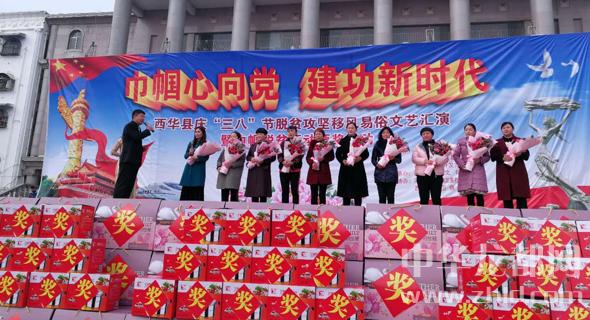 3月5日,西華縣舉辦慶“三八”婦女節(jié)脫貧攻堅移風(fēng)易俗文藝會演,對64名優(yōu)秀女性和3個團(tuán)體進(jìn)行了表彰。記者姬慧洋攝