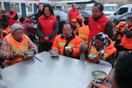 一位老大娘走進(jìn)就餐點(diǎn),張玉潔上前把大娘攙扶坐下,忙端來熱騰騰的雞蛋湯、饅頭并讓老人家慢慢吃。老人家哽咽著說:“我是芝麻洼鄉(xiāng)里人,給這住閨女家,走到這見人很多過來看看,沒想到這是免費(fèi)吃早飯的地方,還都端到跟前、對我恁好,除了俺仨閨女沒有人對我老婆子這樣好過,我是哪輩子修來的福??!