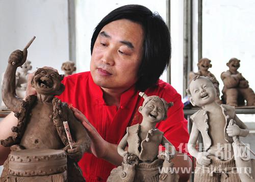 從發(fā)現(xiàn)泥人碰撞易碎、遇水易損,張振福便歷盡艱辛、反復(fù)嘗試,終于像燒磚頭一樣,把泥塑燒成了陶塑;然而,從土黃色變成了磚瓦色,陶塑的顏色仍然單一、呆板,不能展示出泥塑的深層次神韻。于是,張振福大膽地將泥塑與鈞瓷結(jié)合起來,創(chuàng)造了一個(gè)不一樣的藝術(shù)世界。