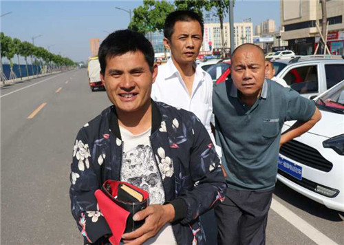 接到電話后,劉傳保和幾人志愿者迅速趕到現(xiàn)場(chǎng),王西山便將挎包交給劉傳保。巧合的是,現(xiàn)場(chǎng)還有一位來(lái)自觀堂鎮(zhèn)大吳村的殘疾人翟勝奇也剛剛撿到一個(gè)手包,里邊有駕駛證,身份證等貴重物品,也一并交給啊劉傳保,讓他幫忙尋找失主。