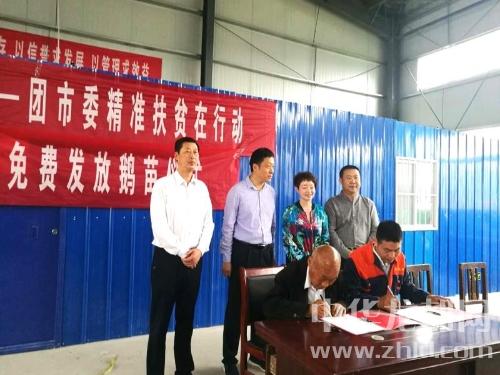 中華龍都網(wǎng)訊(周口報(bào)業(yè)全媒體記者 張猛 通訊員 胡永濤)5月11日上午,團(tuán)市委駐西華縣東王營鄉(xiāng)李方口村工作隊(duì)聯(lián)合周口建成鵝業(yè)舉行為貧困戶獻(xiàn)愛心免費(fèi)發(fā)放鵝苗儀式。團(tuán)市委副處級(jí)紀(jì)檢員楊朝暉,西華縣副縣長毛茹,縣政府辦公室副主任寇新兵,東王營鄉(xiāng)黨委書記彭杰等出席儀式。