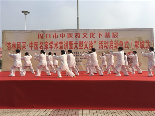 隨后,鄲城太極表演隊(duì)又為大家?guī)硖珮O拳、太極劍等中醫(yī)養(yǎng)生保健操表演,精彩的表演贏得了現(xiàn)場群眾的陣陣喝彩。群眾的高度關(guān)注和積極參與,展現(xiàn)了鄲城人民重視中醫(yī)文化、注重養(yǎng)生保健的精神風(fēng)貌。