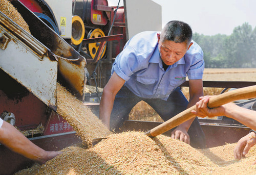 在西華縣潘南村,像樊軍亭一樣外出做“的哥”的有1300多人,他們中大多數(shù)都會在麥收時節(jié)返回家鄉(xiāng),從最初的人工收割到現(xiàn)在的機收機打,改變的是生產(chǎn)方式,不變的是祖輩傳下的麥收情結。新華社記者 李安 攝