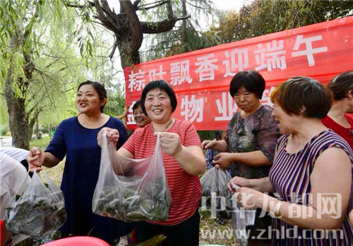 在一片歡聲笑語中,包好的400多個粽子被分發(fā)給小區(qū)的老人,為他們送去一份節(jié)日的問候。