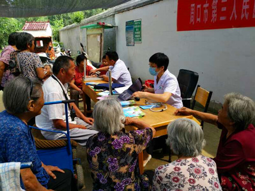 中華龍都網(wǎng)訊(周口報業(yè)全媒體記者 高洪馳 通訊員 李四軍)6月22日,周口市第三人民醫(yī)院組織該院外科、內(nèi)科和中醫(yī)科醫(yī)護(hù)人員,走進(jìn)川匯區(qū)文莊社區(qū),舉辦“健康扶貧巡回義診”活動,免費為村民送醫(yī)、送藥、送健康,受到文莊村民的歡迎。