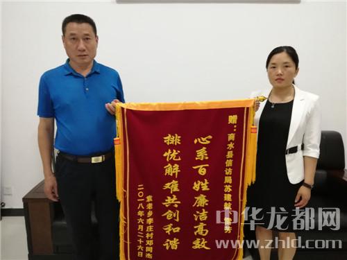 中華龍都網(wǎng)訊(周口報(bào)業(yè)全媒體記者 付永奇 通訊員魏紅 位慶華 )6月26日上午,商水縣信訪局門(mén)前鼓樂(lè)喧天、鞭炮齊鳴、人群涌動(dòng)。其間,幾名群眾簇?fù)碇幻嫔蠒?shū)“心系百姓廉潔高效排憂解難共創(chuàng)和諧”的錦旗徑自向商水縣信訪局走來(lái)。