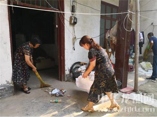 在貧困戶張敬宇家中,縣委宣傳部副部長葛澤洲安排分工協(xié)作?!芭鲀?nèi),打掃屋內(nèi)衛(wèi)生,男主外,收拾庭院,開工?!苯又蠹夷闷饞甙?、抹布等工具,有的打掃院子,有的擦桌子,有的整理內(nèi)務(wù),貧困戶家中呈現(xiàn)出一派繁忙景象。