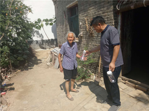當(dāng)天,張照營冒著酷暑走遍前進村所聯(lián)系的6戶貧困戶家中送“清涼杯”。和張照營一樣,在7月19日這天,太康縣委宣傳部、太康縣文廣新局的幫扶人員走村入戶,來到所幫扶的貧困群眾家中,開展扶貧扶志送“清涼”活動。
