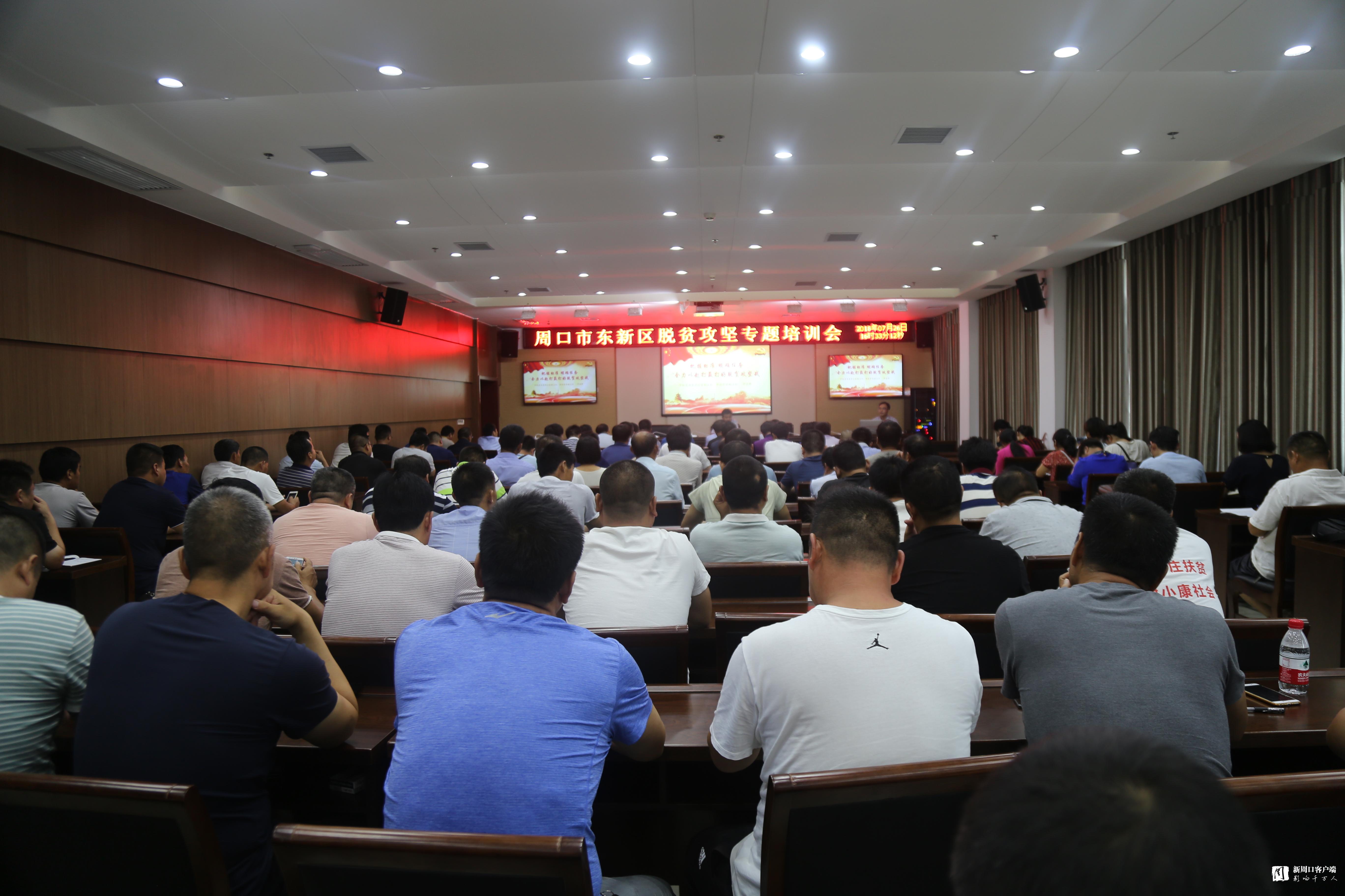 周口日報(bào)·新周口客戶端記者 張勁松 通訊員 蘇千 王玉鳳 文/圖 7月26日下午,東新區(qū)召開全區(qū)脫貧攻堅(jiān)專題培訓(xùn)會,管委會副主任李湛主持會議,各鄉(xiāng)(辦)和區(qū)直單位相關(guān)負(fù)責(zé)人,全區(qū)49個(gè)行政村責(zé)任組組長、支部書記、村主任、黨建聯(lián)系人,9個(gè)重點(diǎn)村第一書記及區(qū)扶貧辦相關(guān)人員共計(jì)300余人參加會議。